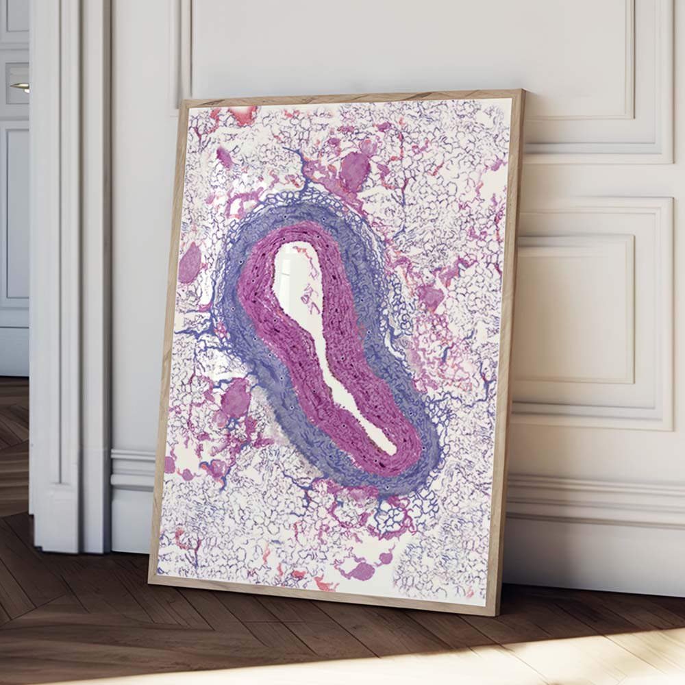 Transform your medical office with this refined vein histology poster, showcasing the intricate anatomy of vascular tissue. This histology art captures the layered composition of vessel walls in striking detail. The sophisticated visual presentation makes it an excellent addition to clinics, hospitals, or professional healthcare settings. Ideal for practitioners who value the intersection of medical science and aesthetic design, this piece elevates any clinical environment while fostering patient appreciation for human physiology.